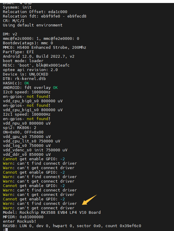 对比启动日志。在uboot 阶段提示无法发现设备
