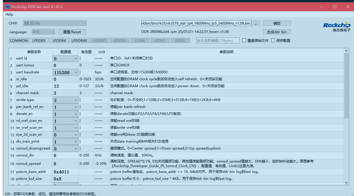 后续的sdk源码的tools 目录有提供对应修改ddrbin的工具,可以直接图像化界面修改